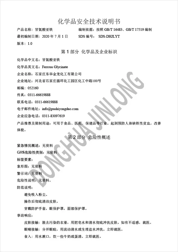 - 可用于食品、医药、保健品等行业。起到预防人体缺铁性贫血,改善体能,改善孕妇妊娠期的健康,降低婴儿死亡率等。