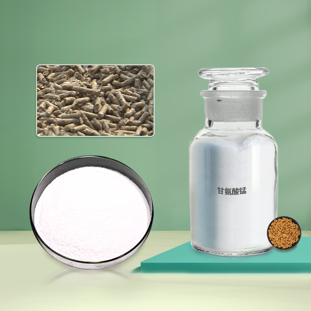 锰主要存在于垂体、肝胰脏和骨的粒线体中,为多种酶的组成部分。锰参与体内的造血过程,促进细胞内脂肪的氧化作用,可防止动脉粥样硬化。锰缺乏时可引起生长迟缓、骨质疏松和运动失常等。甘氨酸锰是一种新型营养强化剂,可用于食品、医药、保健品等行业,起到补充人体所需锰的作用。甘氨酸锰在消化道中大大降低了元素间(如Ca、Mg、Cu、Fe、Zn、Mn等二价离子)的拮抗作用。生物利用度高。