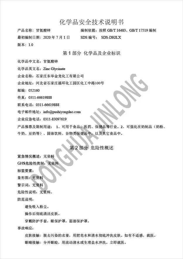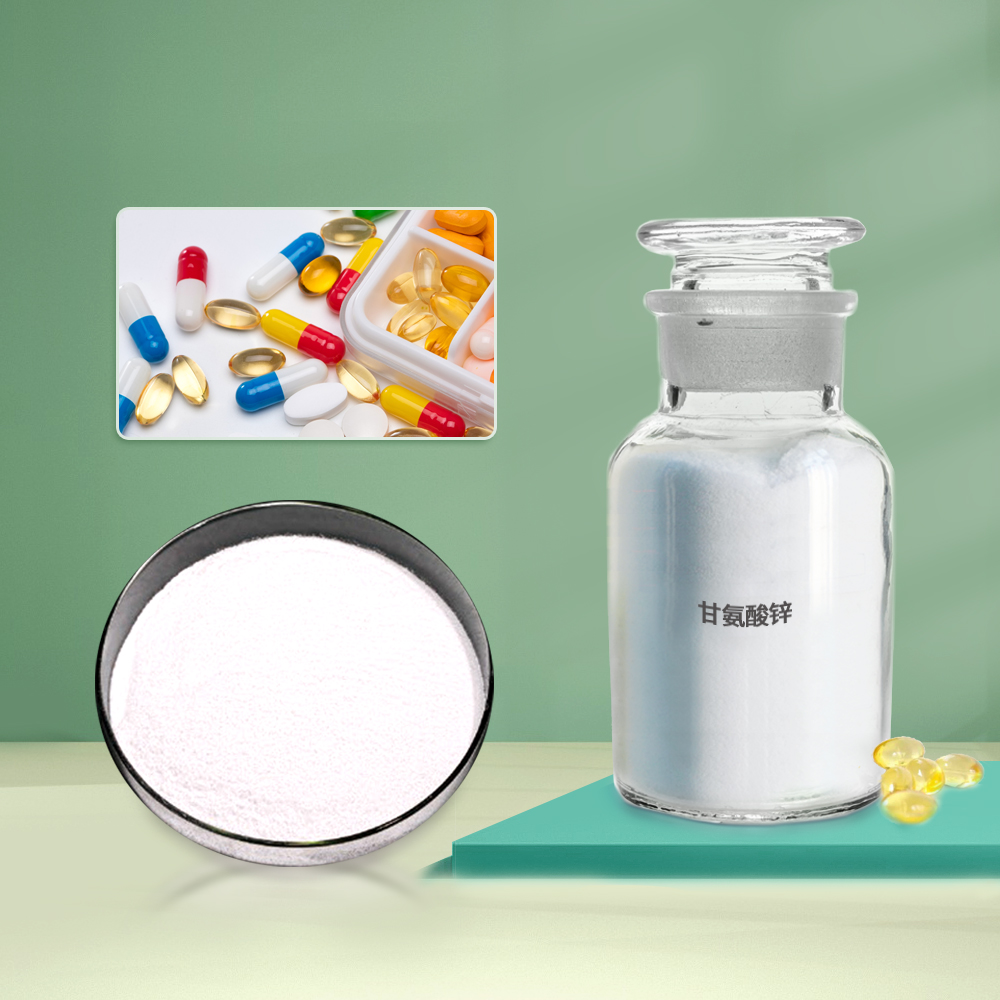 新型营养性补锌剂,是由锌元素与甘氨酸形成的具有环状结构的螯合物。甘氨酸是分子量最小的氨基酸,因此补充相同数量的锌,与其它氨基酸螯合锌相比甘氨酸锌用量最少。甘氨酸锌克服了乳酸锌、葡萄糖酸锌等第二代食品营养强化剂利用率低的缺点,以其独特的分子结构把人体必须的氨基酸和微量元素有机结合,符合人体吸收机制和特点,在人体服用15分钟内进入肠黏膜而被快速吸收,同时与体内的钙、铁等微量元素不发生拮抗作用,进而提高了人体对锌的吸收率。