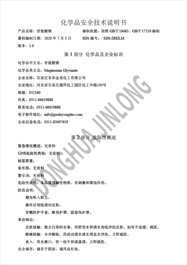 - 新型营养性补镁剂,是由镁元素与甘氨酸形成的具有环状结构的螯合物,吸收效果远高于镁的无机盐、有机盐类。可用于食品、医药、饲料、保健品等行业;